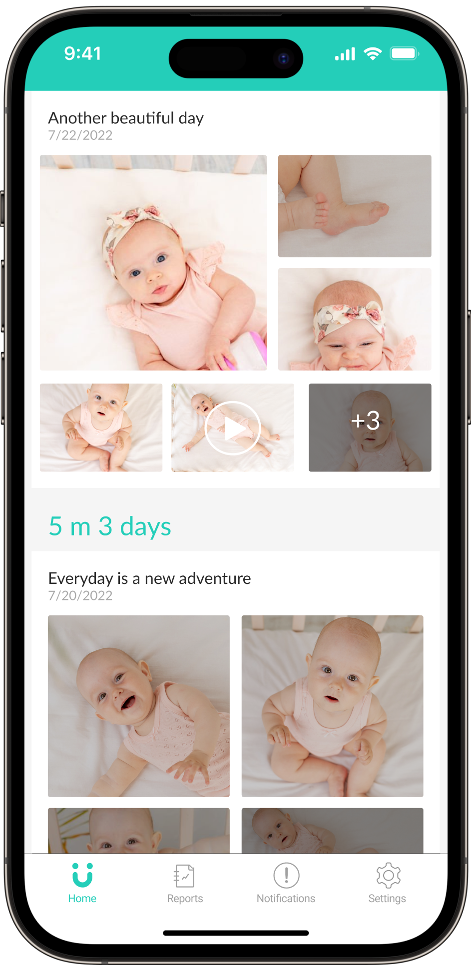 Your baby's very own digital scrapbook from day 1, organized for you to look back on every evening