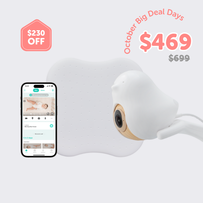 This bundle includes a CuboAi Smart Baby Monitor 3 (Floor Stand Set) and a Sleep Sensor Pad, which monitors Baby’s breathing motion without contact. Receive instant alerts for covered faces, rollovers, cries, or coughs, so you’ll always know when Baby needs you most.
